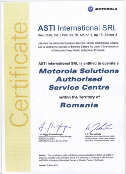 Totdeauna la dispoziția clientului cu profesionalism și seriozitate. Aceasta este deviza/angajamentul societății noastre și clienții noștri pot confirma că într-adevăr, așa ne desfășurăm activitatea. Ne preocupăm nu numai să oferim produse de calitate la prețuri competitive, ci și întregul suport tehnic necesar pentru implementarea de soluții conform cerințelor de eficiență și securitate ale clienților. Societatea are certificări ISO, iar departamentul de service este autorizat de principalul nostru partener, Motorola.