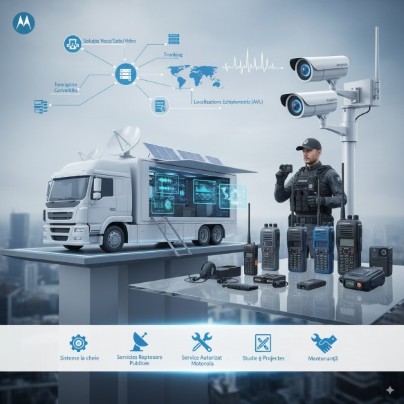Stații radio și accesorii Motorola: Mototrbo, Tetra, Wave Camere video agent Interfețe pentru localizarea echipamentelor (AVL) Interfețe pentru conectarea stațiilor din sisteme diferite (Motobridge, Mimer, SmartPTT, etc.)